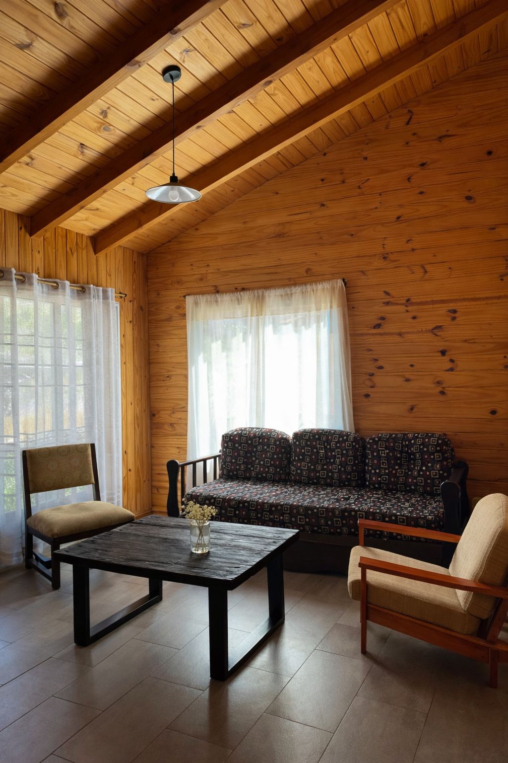 En Estancia Paso Flores ofrecemos cómodas cabañas totalmente equipadas, con cocina completa y capacidad para 2 a 8 personas, ideales para una estadía independiente en plena naturaleza. Además, contamos con una hostería de 12 habitaciones, especialmente preparada para recibir grupos y eventos en un entorno único.